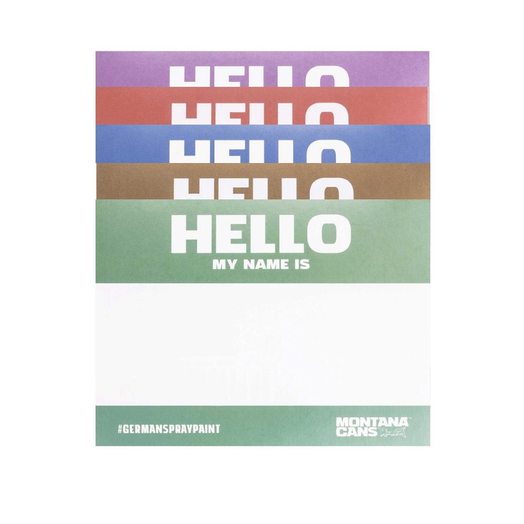 Lækker Hello metallic stickerpack fra Montana Cans. De er lavet med high-quality screenprint på klisterpapir med UV-lak, så de står mega skarpt med fed glossy finish og solid beskyttelse, der holder. Hver pakke smider 100 stickers (20 i hver farve) i størrelsen 12 × 9cm, og de har split-bagside, så de er nemme at smække op.